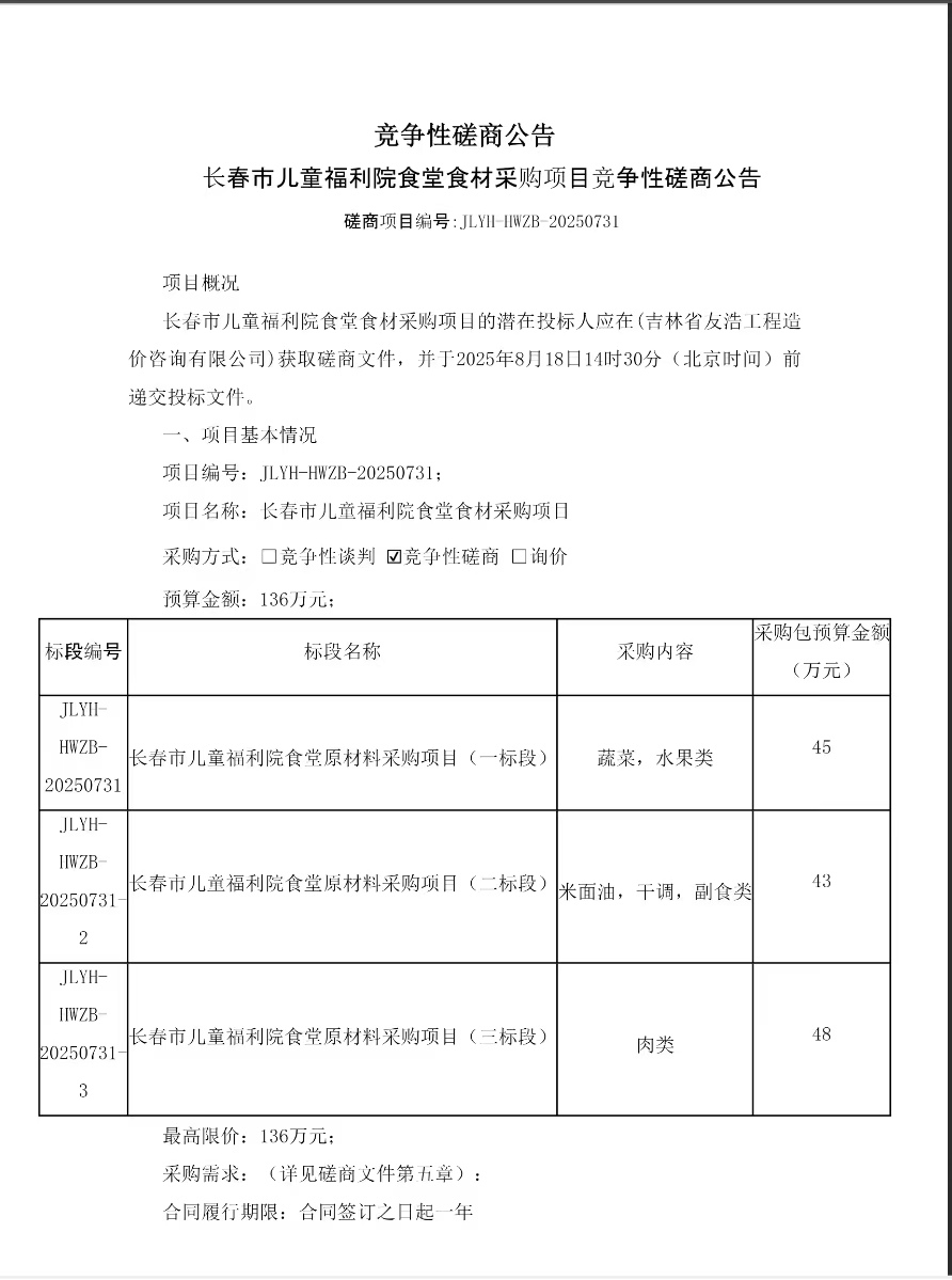 长春市儿童福利院食堂食材采购项目竞争性磋商公告