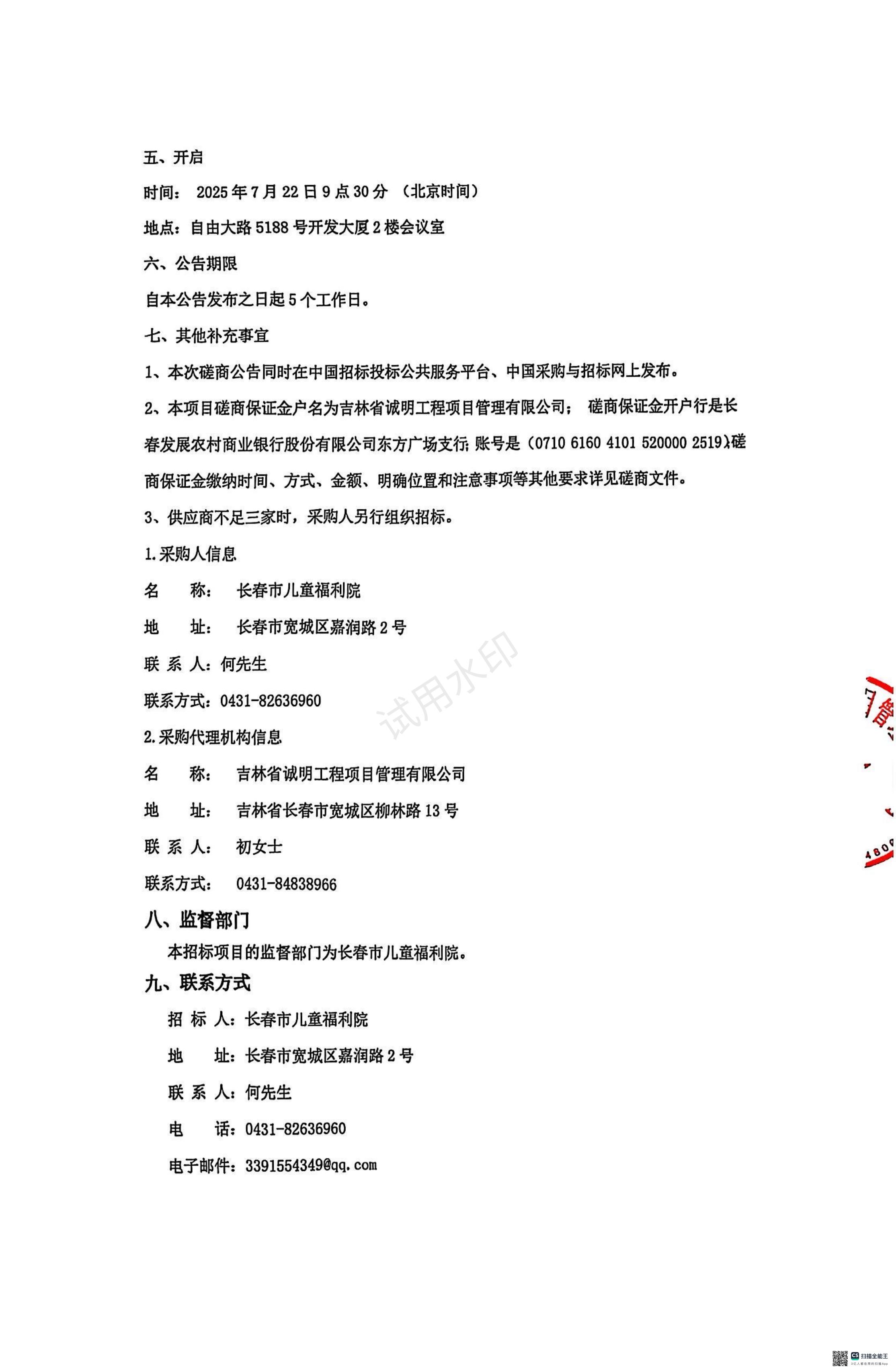 · 长春市儿童福利院消防控制室安全员值守服务项目开标公告