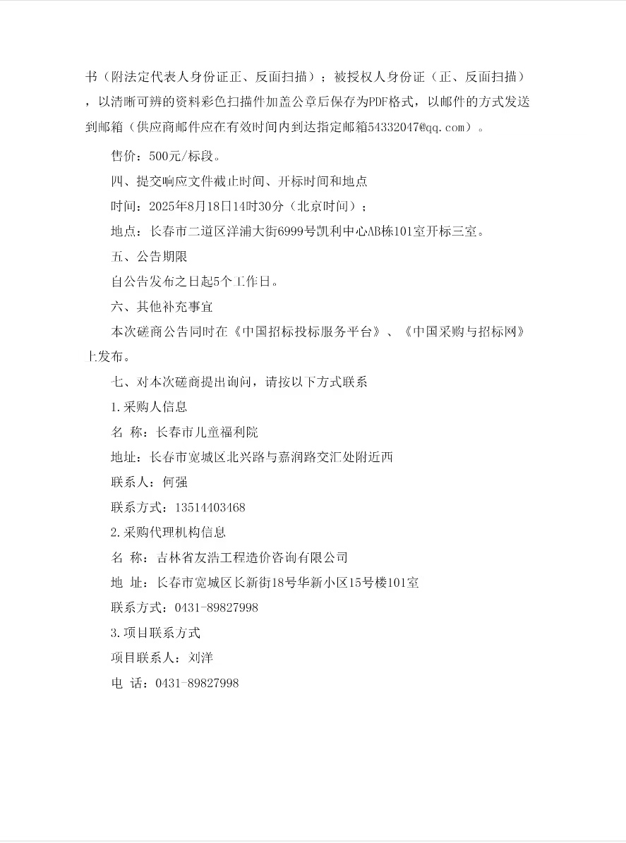 长春市儿童福利院食堂食材采购项目竞争性磋商公告